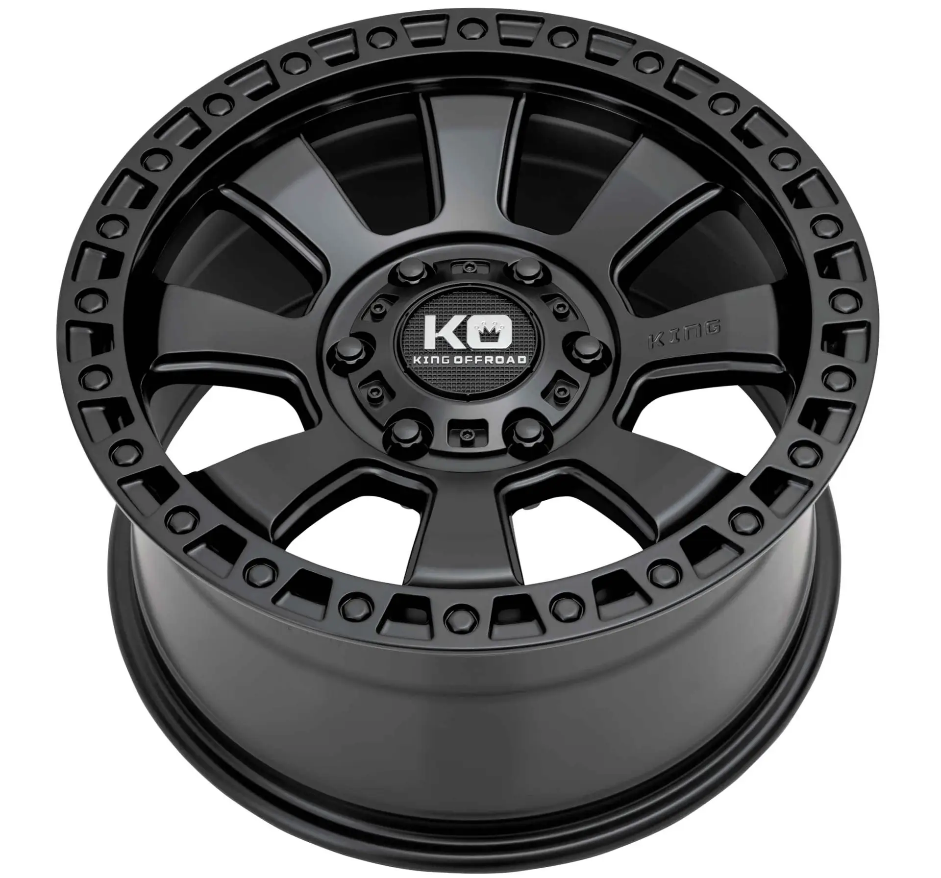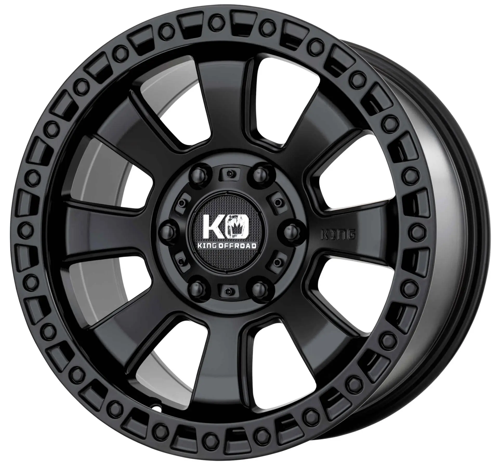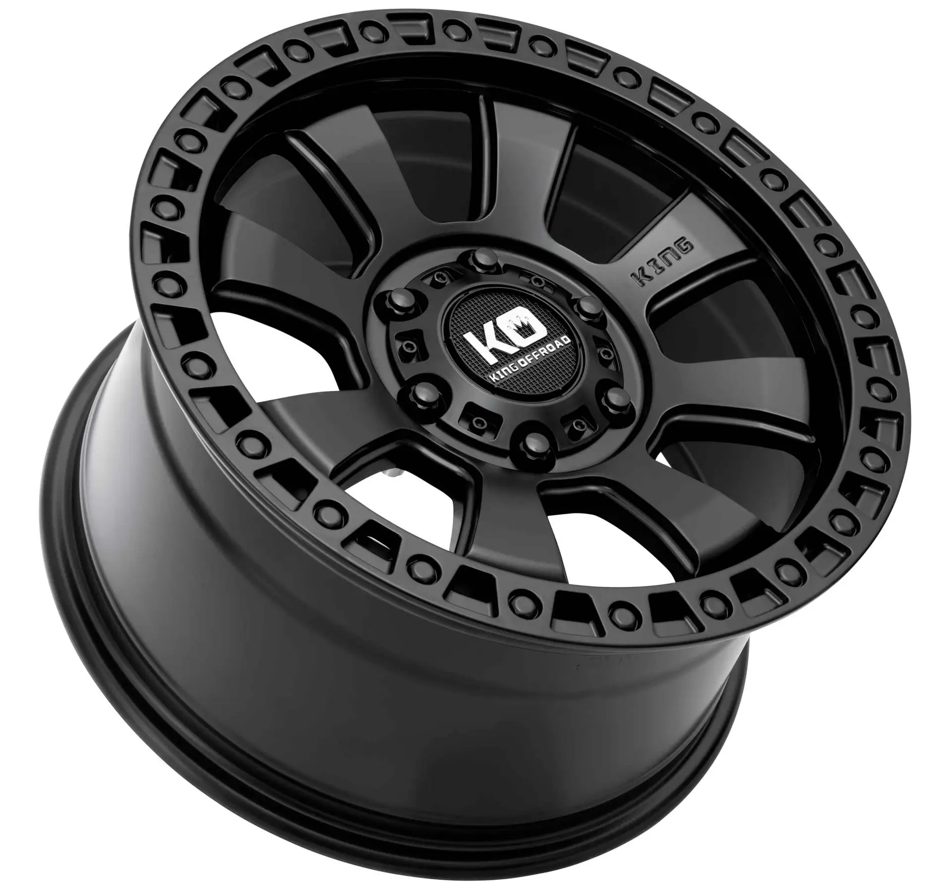 Description | KING OFFROAD Armor featuring Satin Black paint and a flared 8-spoke centre, this design is sure to add a distinctive flair and polish to any modern 4WD. The Armor is built tough with a load rating of 1600kg, making it a clear choice for any vehicle wanting a GVM+ suspension upgrade.