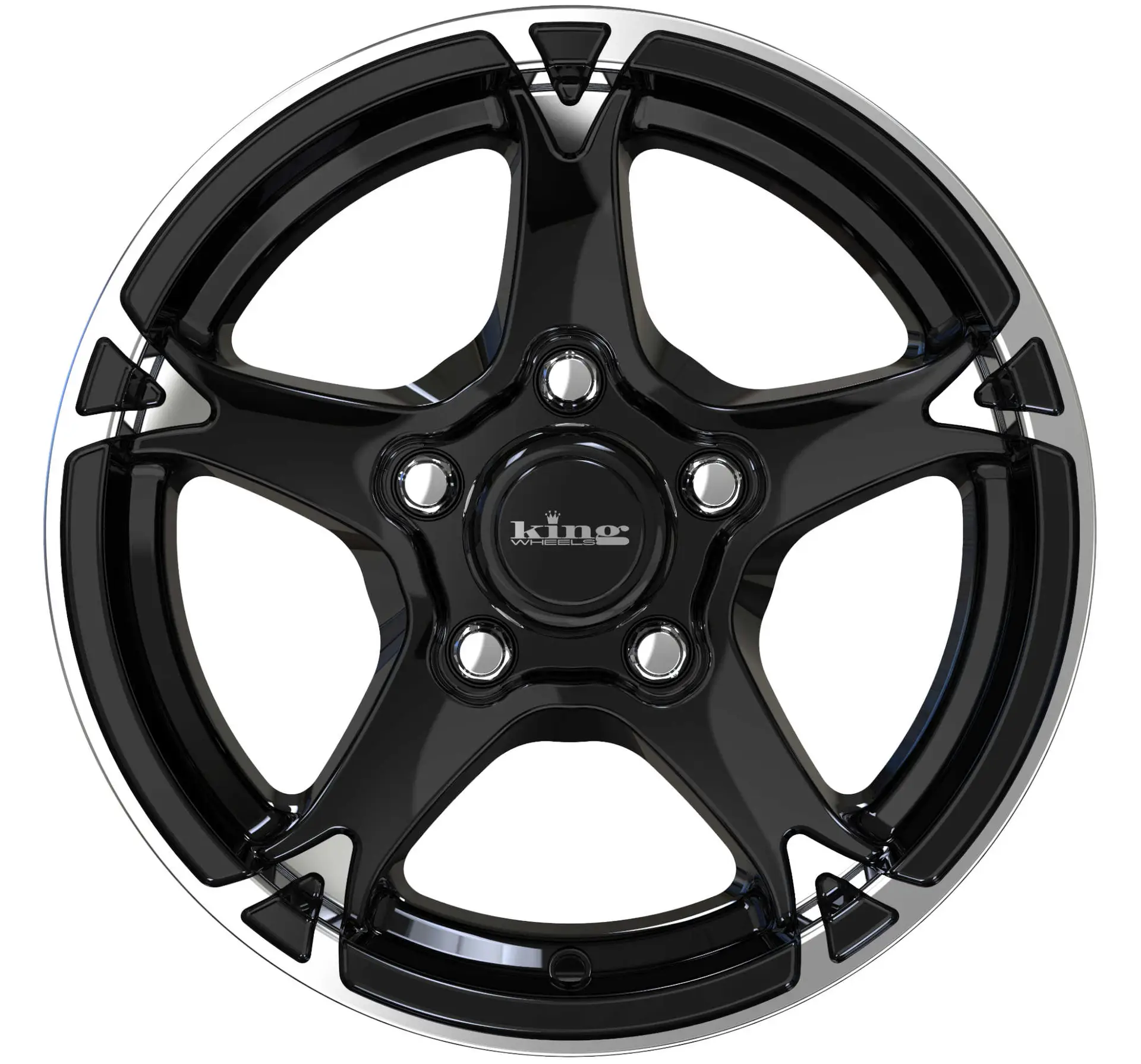 Description | KING Chaser-5 is the traditional 5 spoke trailer design with a machined face and cut back lip. Features include heavy-duty load carrying capacity and dome style centre cap.