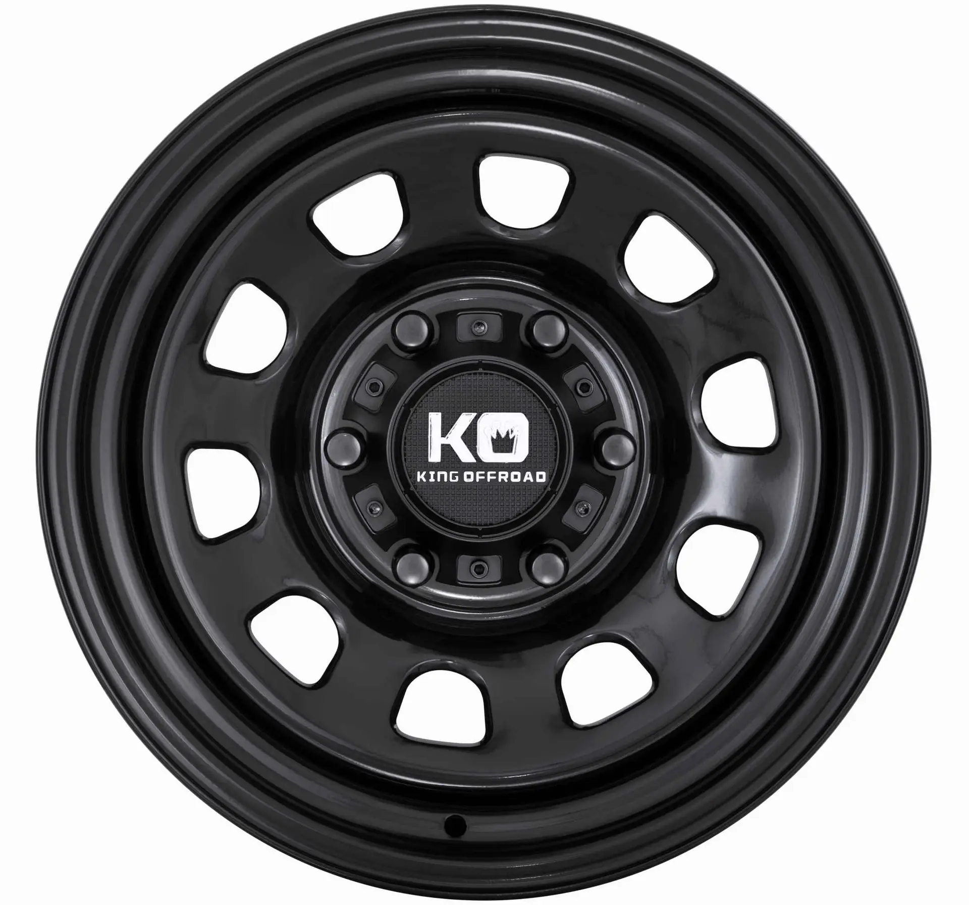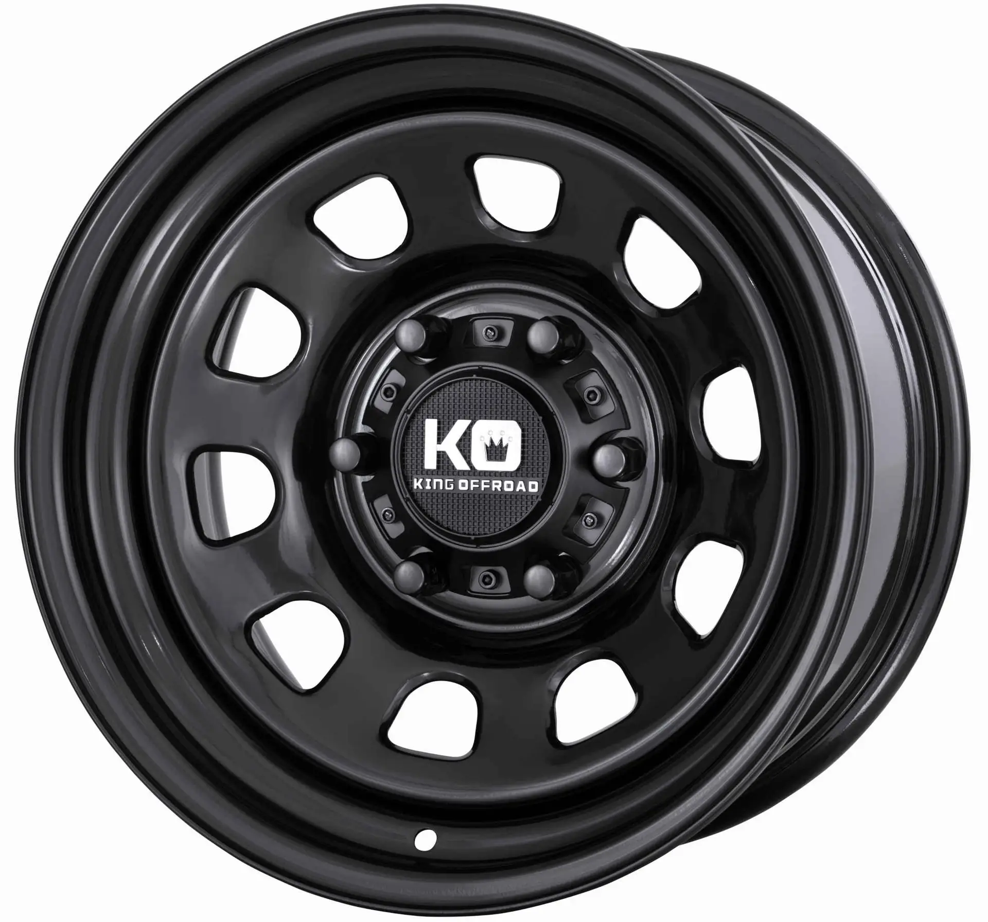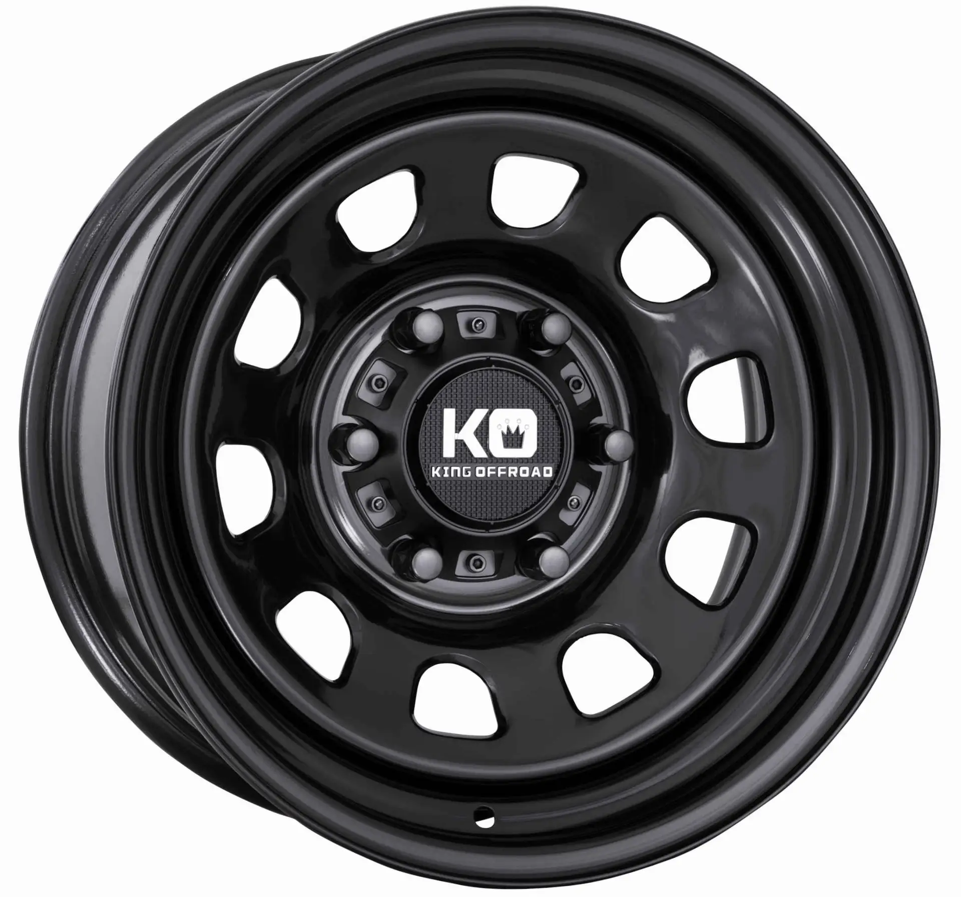 Description | KING D-hole wheels traditionally rate better in radial and corner fatigue testing. Made to the highest possible standard, the D-hole steel wheel is an industry stalwart featured by its high load rating and quality powder-coated finish. Note: Nuts, caps and accessories are an optional extra.