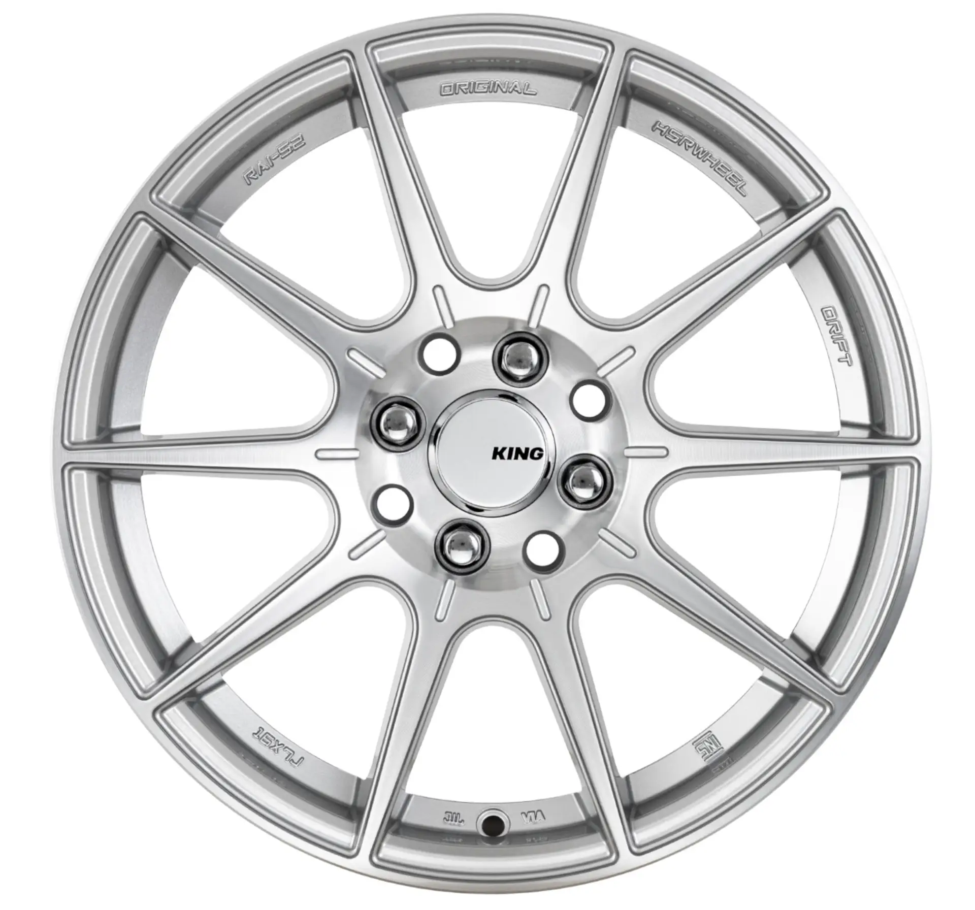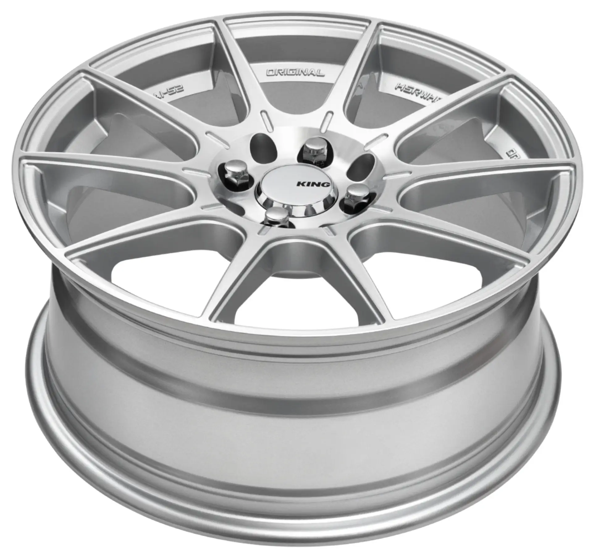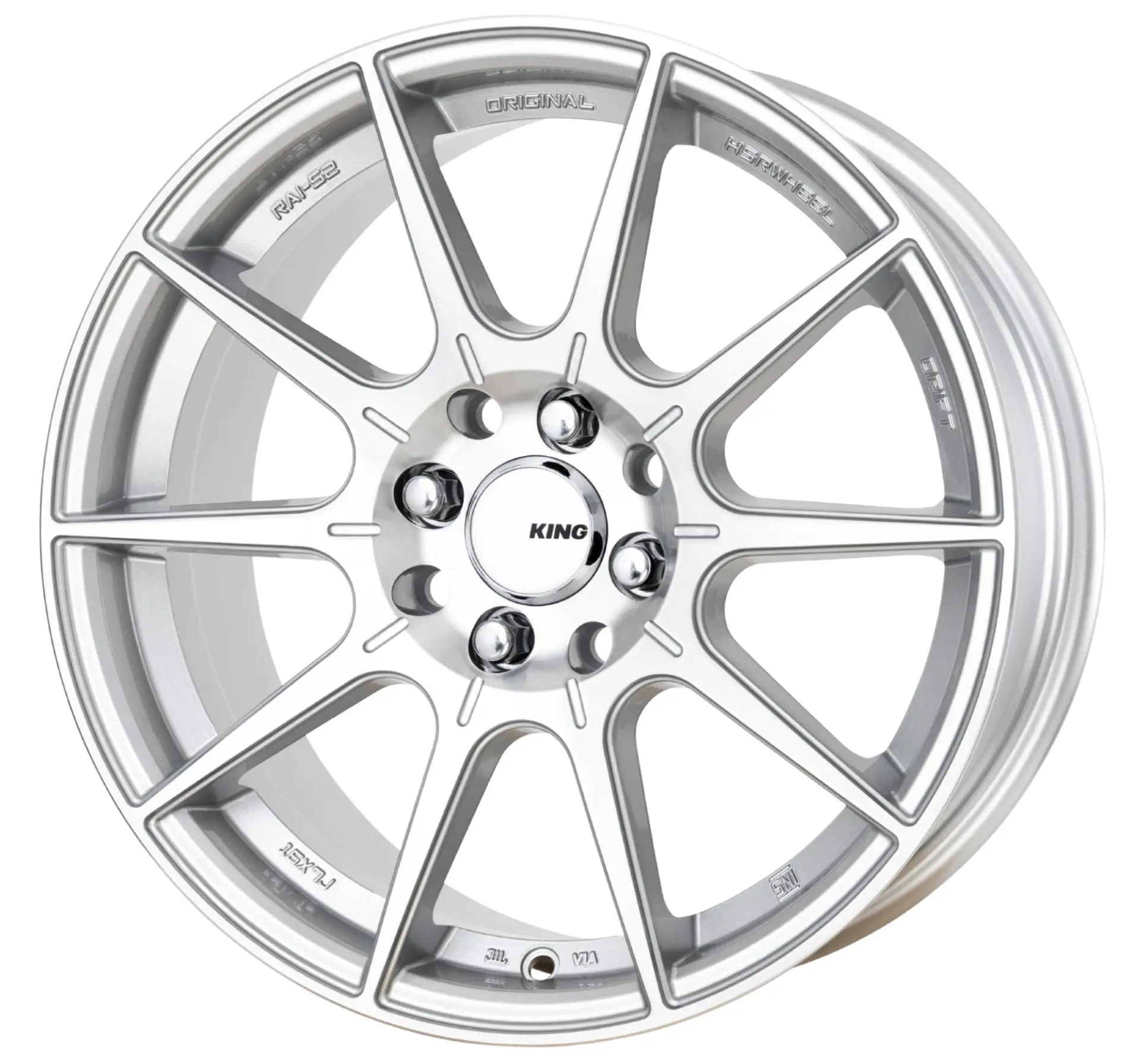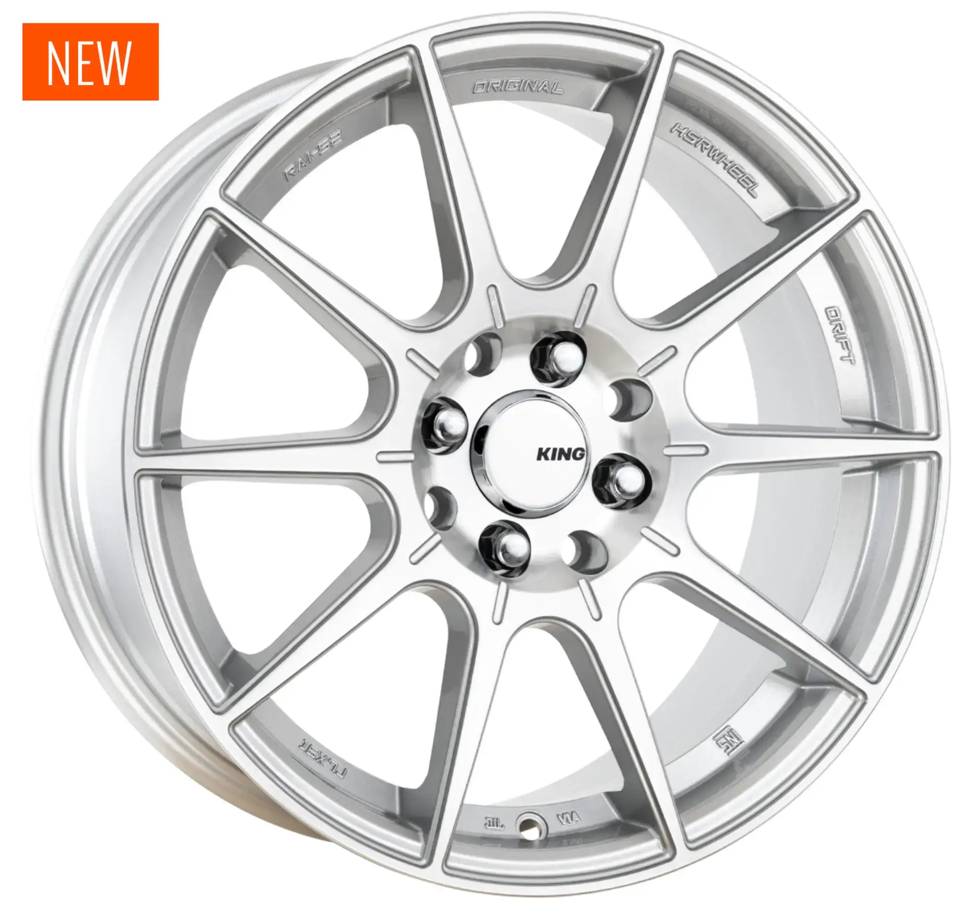 Description | KING Flash brings a bold race ready edge to your ride with it’s dynamic 10 spoke design, finished in machined silver. Engineered for performance this light weight multi fitment wheel combines strength with agility offering an aggressive stance without compromise. Available in a range of sizes to fit various vehicles, the flash is the perfect choice for those seeking a high performance versatile wheel with a premium look.