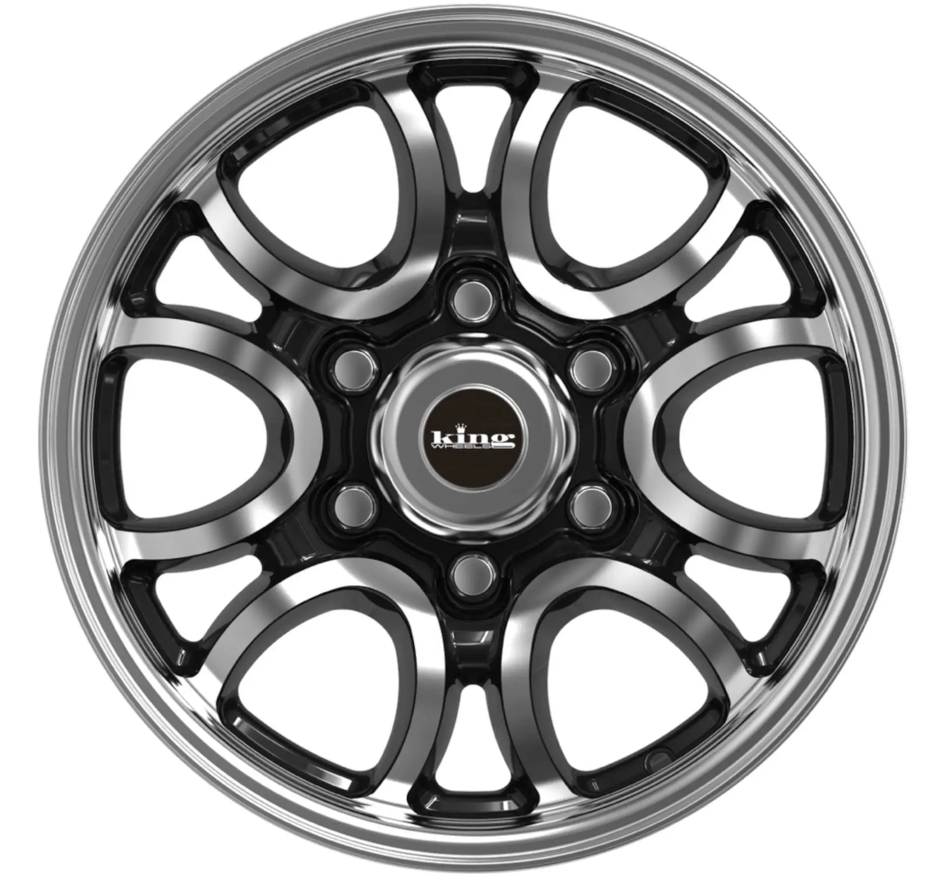 Description | KING HYDRA-6 is A 6 spoke trailer design with a machined face and lip. Features include heavy-duty load carrying capacity and dome style centre cap.
