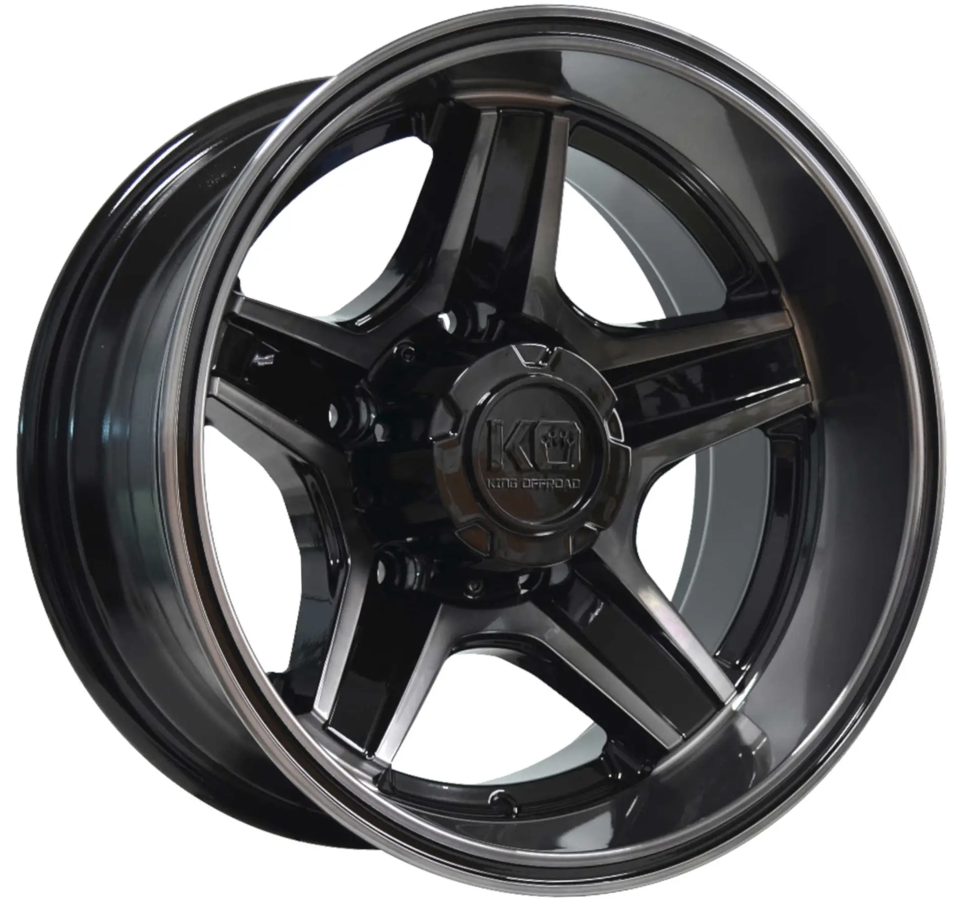 Description | KING OFFROAD Rival is a Toyota-inspired classic, featuring an elegant black tint over a machined lip and spoke face. The Rival is built tough with a 1600kg load rating and features 2 lip versions. Zero offset for the LC79 and a Neg 50 offset with 4-inch dish for LC79 track correction.