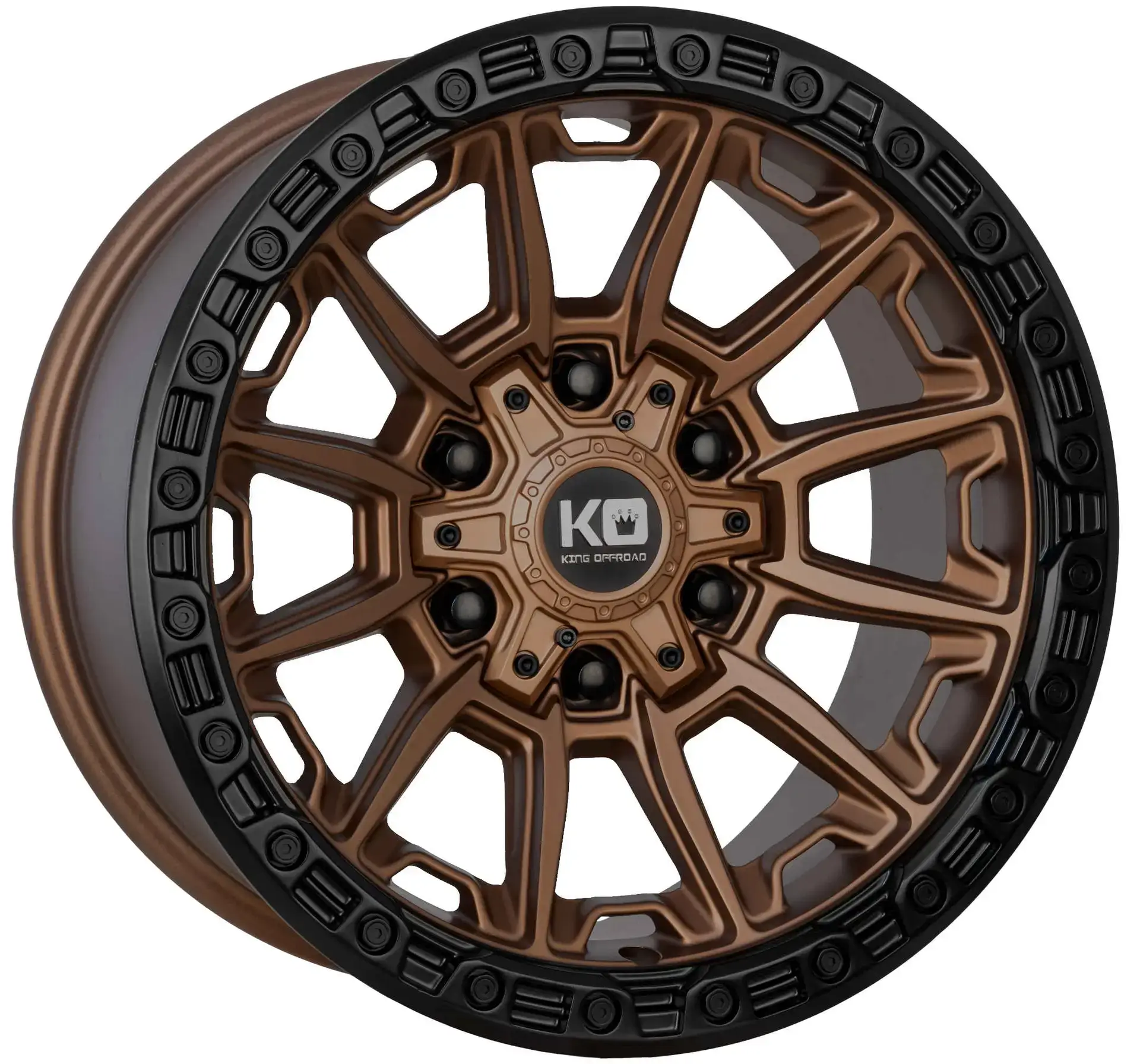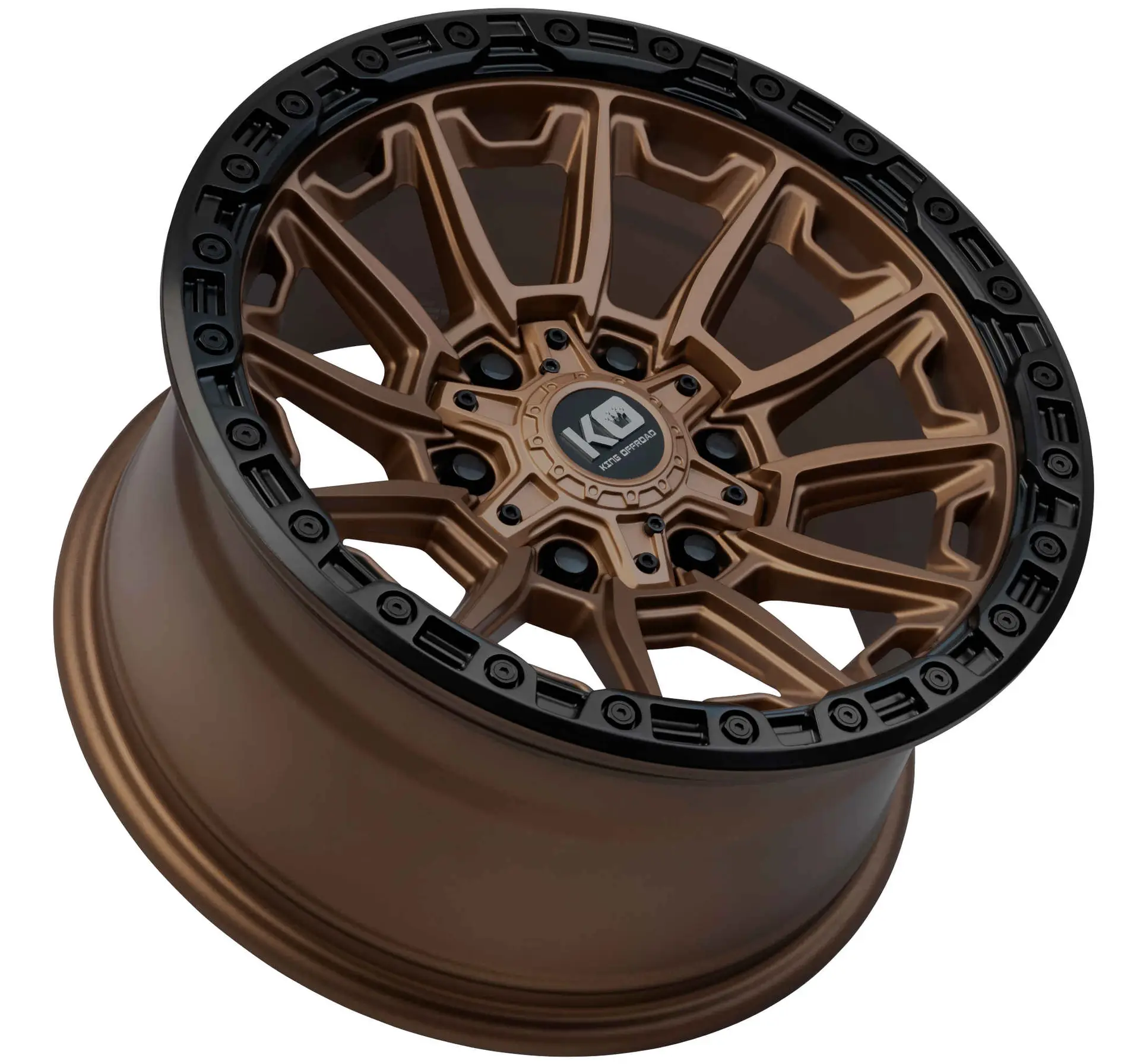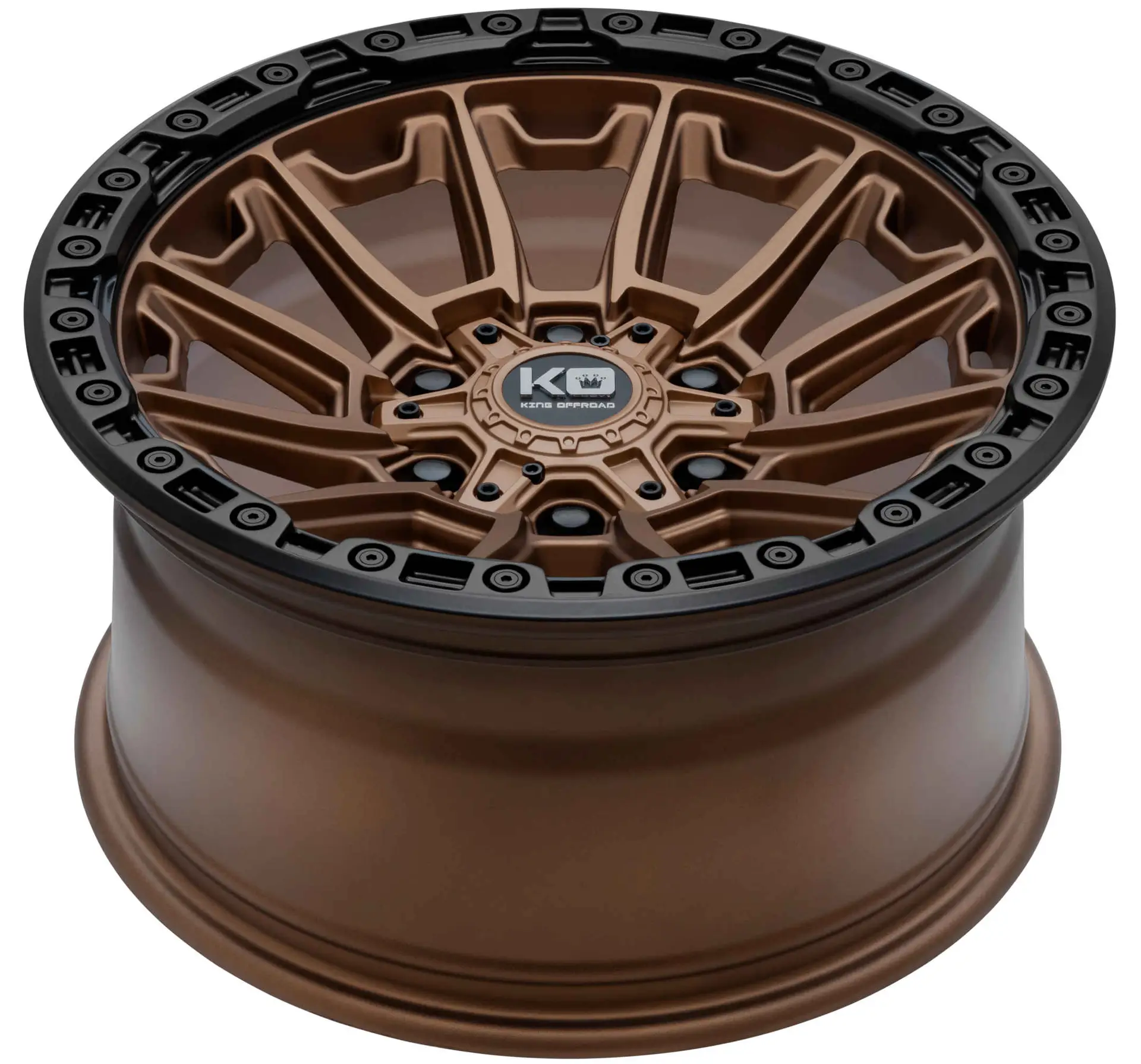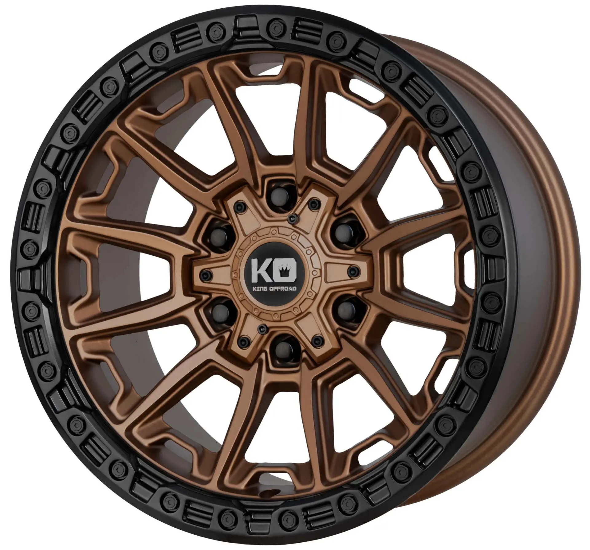 Description | King Offroad Warrior has a Deep Concave 12 Spoke design with a detailed Beadlock Lip. The Concave spoke both enhances aesthetics and adds extra Brake Clearance for those 4×4 vehicles with brake upgrades. Utilising a unique multi hole pcd drill configuration means the wheel is more versatile whilst maintaining strength. The Warrior is available in 3 colours; Satin Black, Matte Titanium with Black Lip and Satin Bronze with Black Lip.